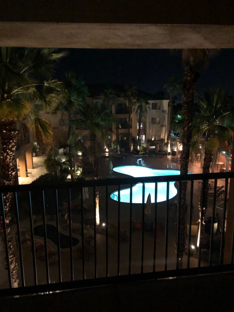 May 3, 2023, Wednesday morning, 12:15am, hotel in Palm Desert, California, USA. Woke up and couldn’t fall back asleep right away. That is alright. My anxiety has dissipated and I am at peace. These moments are rare, I want to enjoy it as long as possible. The wind is blowing gently outside, the lit up pool is calming to look at and I am in control of my emotions. All is right with the world this Wednesday morning just after midnight pacific time.