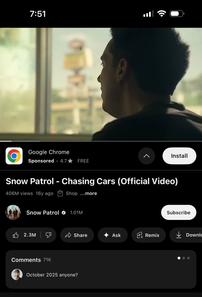 October 21,2025, Tuesday night, 7:52pm,pacific standard time,apartment in Dana Point, California,USA. After work I picked my daughter up for a little adventure. Every Tuesday we try to get ice cream at the Baskin Robbins in Foothill Ranch. Tuesdays are family night so a regular scoop is half price. That is a hard deal to pass up and we have a good time talking and listening to music. After I dropped her off I headed back to Dana Point. I don’t often listen to music when I drive home but tonight I made an exception to listen to one specific song. “All that I am, all that I ever was is here in your perfect eyes, they’re all I can see.”
