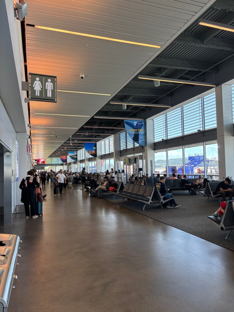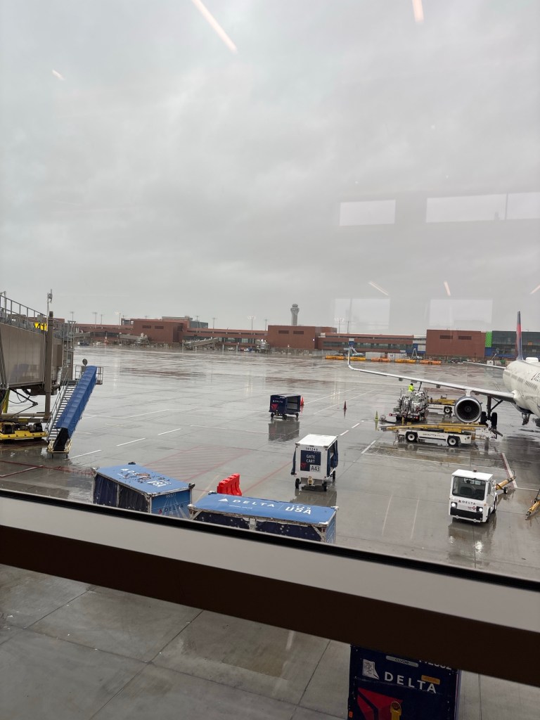 October 4,2035,Saturday afternoon,12:02pm, mountain standard time, Salt Lake City International AirPort, Salt Lake City,,USA. I woke up at five thirty this morning and took a walk. The temperature was chilly but nothing harsh. After the walk I grabbed coffee at Maverik and came back to the condo to get ready for the day. At 8am the sky turned dark and it began to hail. I decided to leave early for the airport with the hope the weather would be clear down the hill. Unfortunately, it has been rainy and overcast so far but no problem. My flight isn’t until three. I am hanging out at the airport. Flying on Saturday is so much easier. Security, the gates and shops are all pretty quiet. I am enjoying a second Americano and reading articles on my phone.