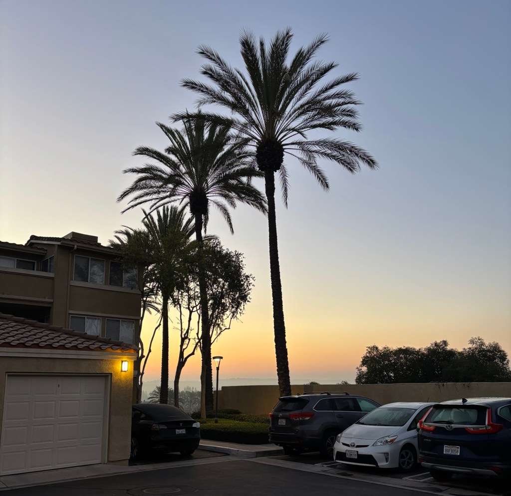 December 1,2025,Monday night, 6:28pm,pacific standard time,apartment in Dana Point, California, USA. I picked my daughter and the dog up at 6:30am this morning and brought them back to Dana Point. Hopefully it is the last day contractors are in their apartment unit fixing the water damage from a leak above them. My daughter spent the day here while I went to work in costs Mesa. Her mom picked her up before I got home but I have to say, it was nice to see the accoutrements of a teenager hanging out (fast food wrappers, blankets and pillows strewn about,etc) when I came home rather than the staid existence I usually keep. Sunrise and sunset were beautiful today.